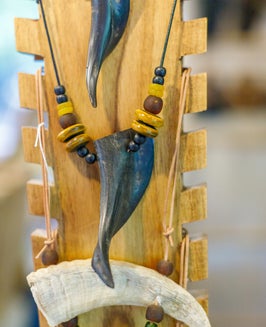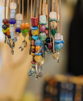 We maken sieraden van natuurlijke materialen zoals glas, natuursteen, zilver en brons. Glas geeft mooie kleuren, natuursteen heeft een unieke uitstraling, en zilveren en bronzen hangers zorgen voor een stoere of juist elegante afwerking. Elk sieraad is handgemaakt en kan op verzoek aangepast worden aan jouw wensen.