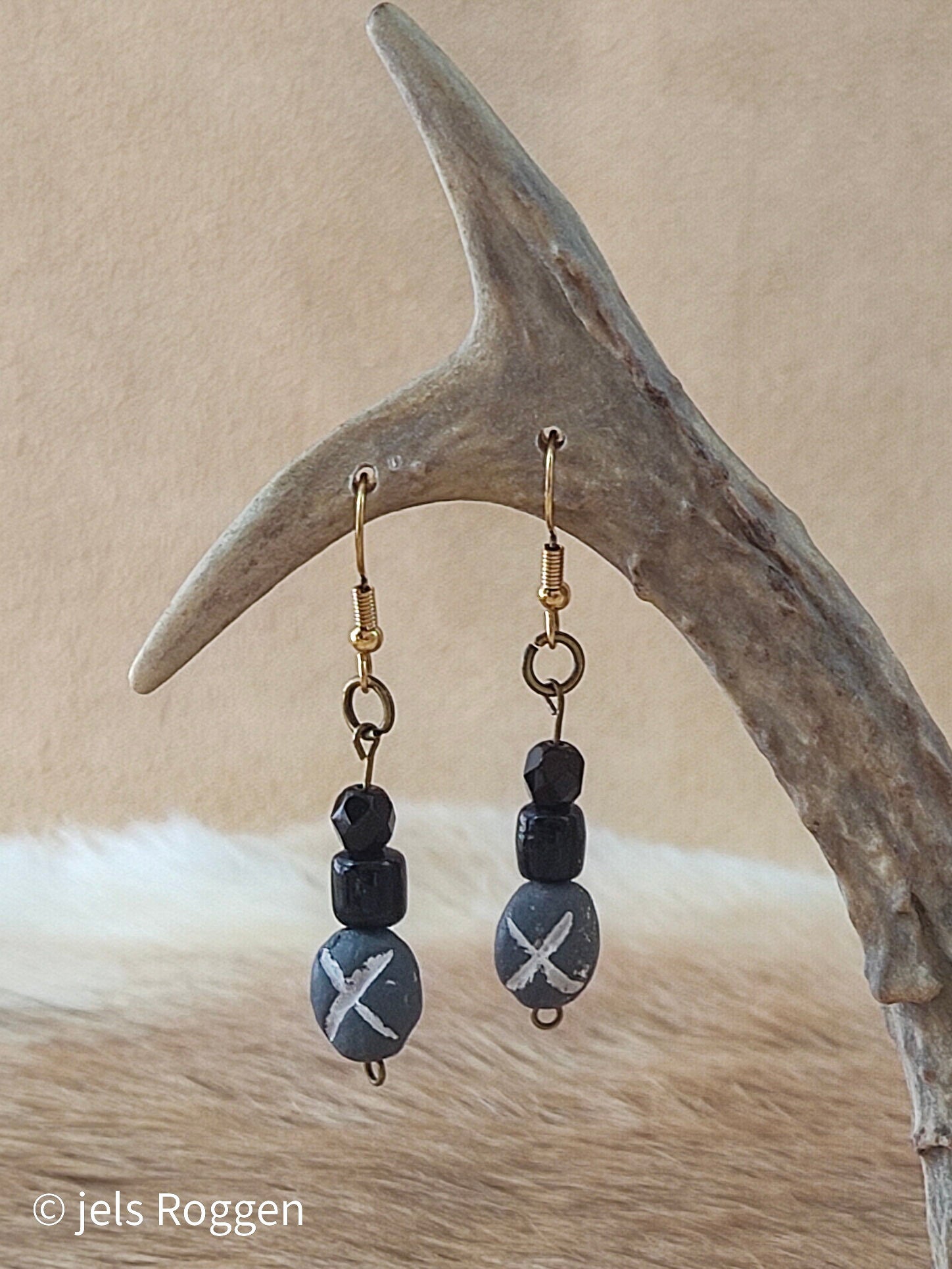 Bewerkte kleikraal met zwarte glaskralen