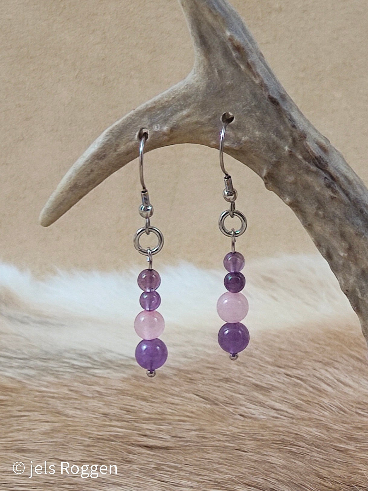 Amethyst en rozenkwarts, zilverkleurig